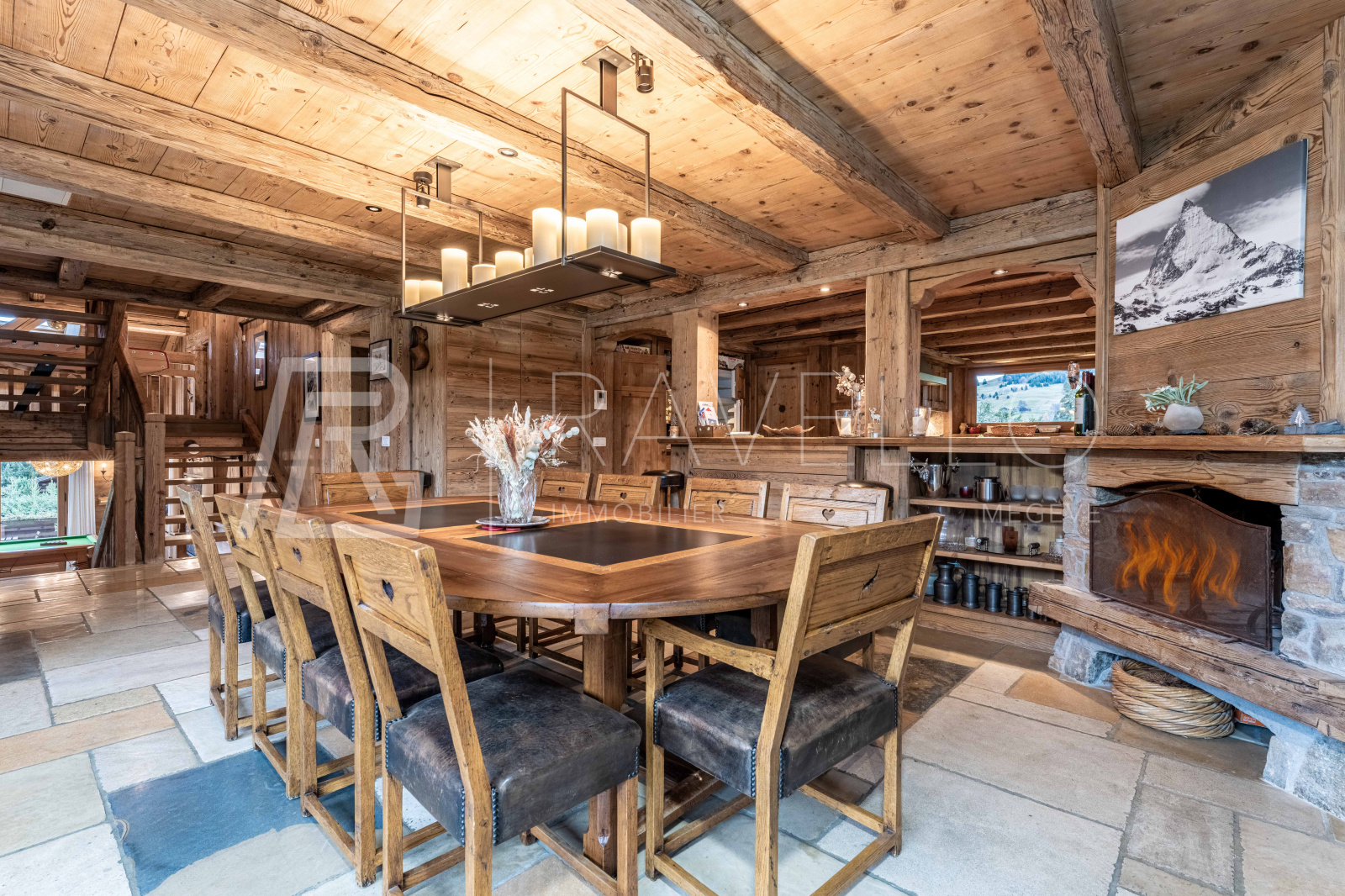 Espaces de vie : séjour élégant avec un magnifique billard et une cheminée chaleureuse, parfait pour des moments conviviaux après une journée sur les pistes ou en randonnée.