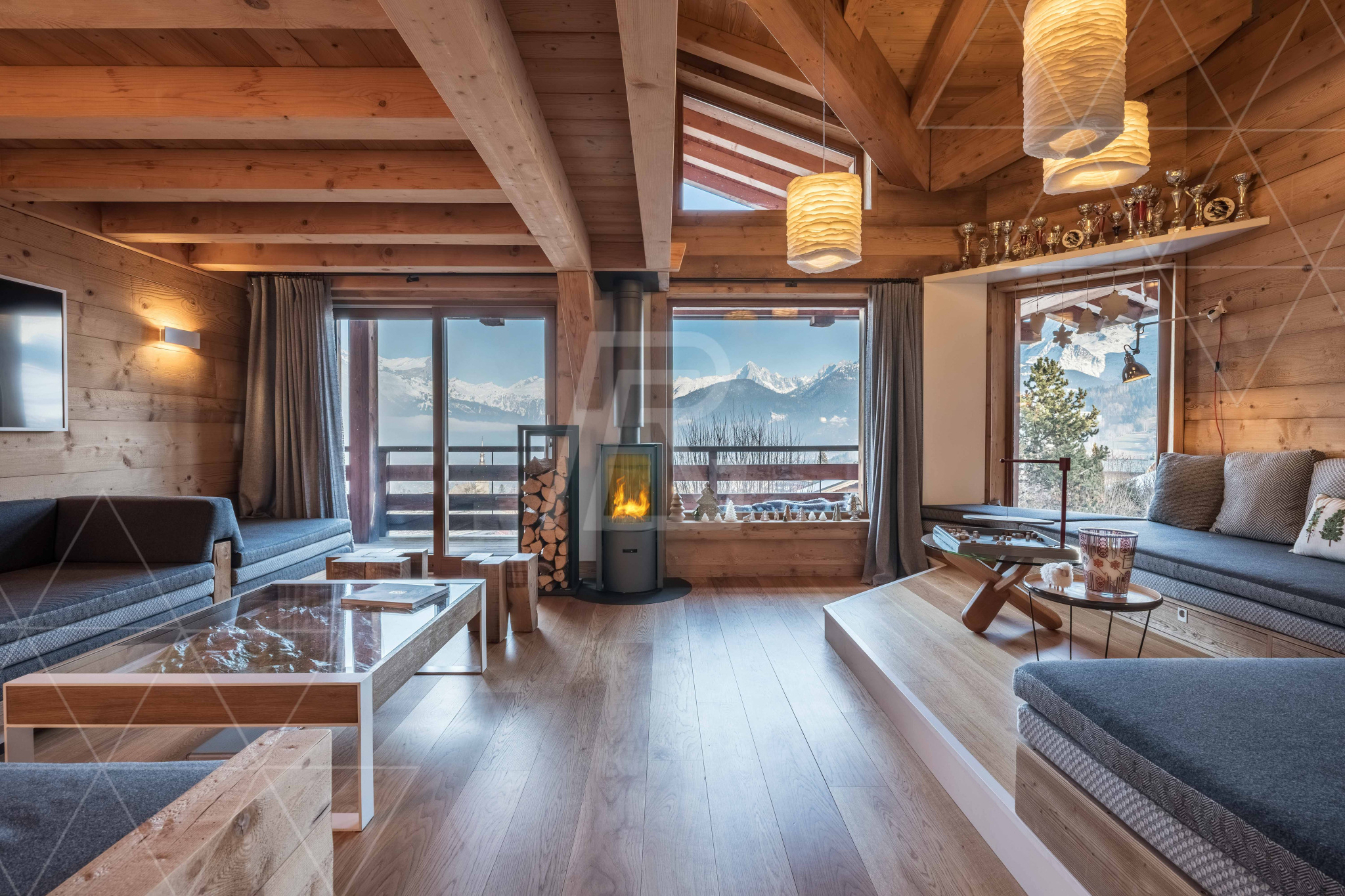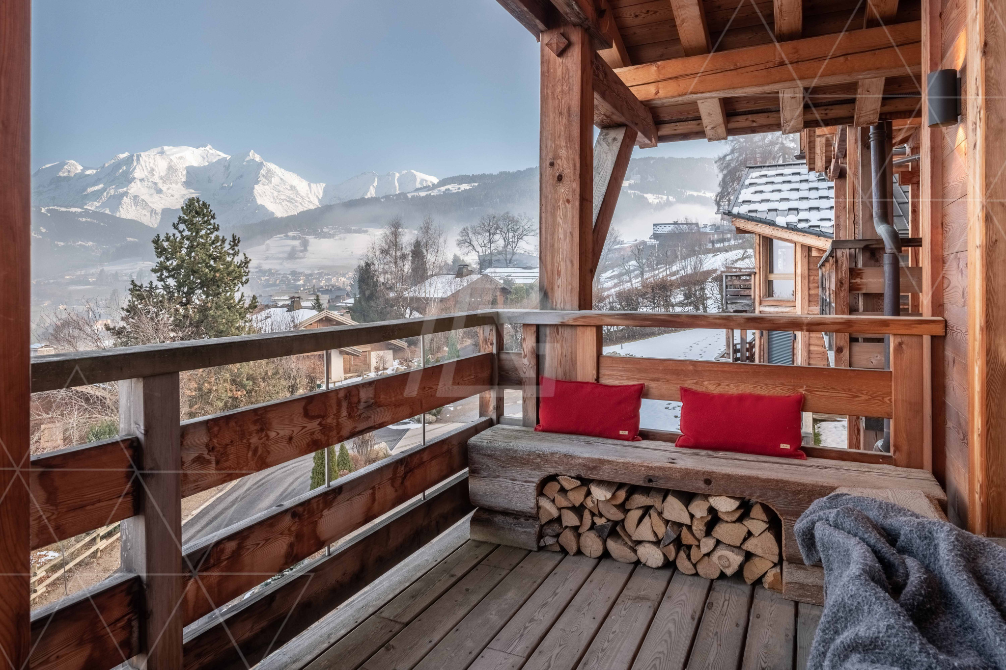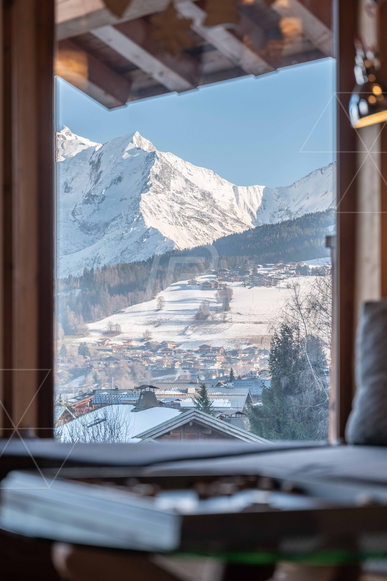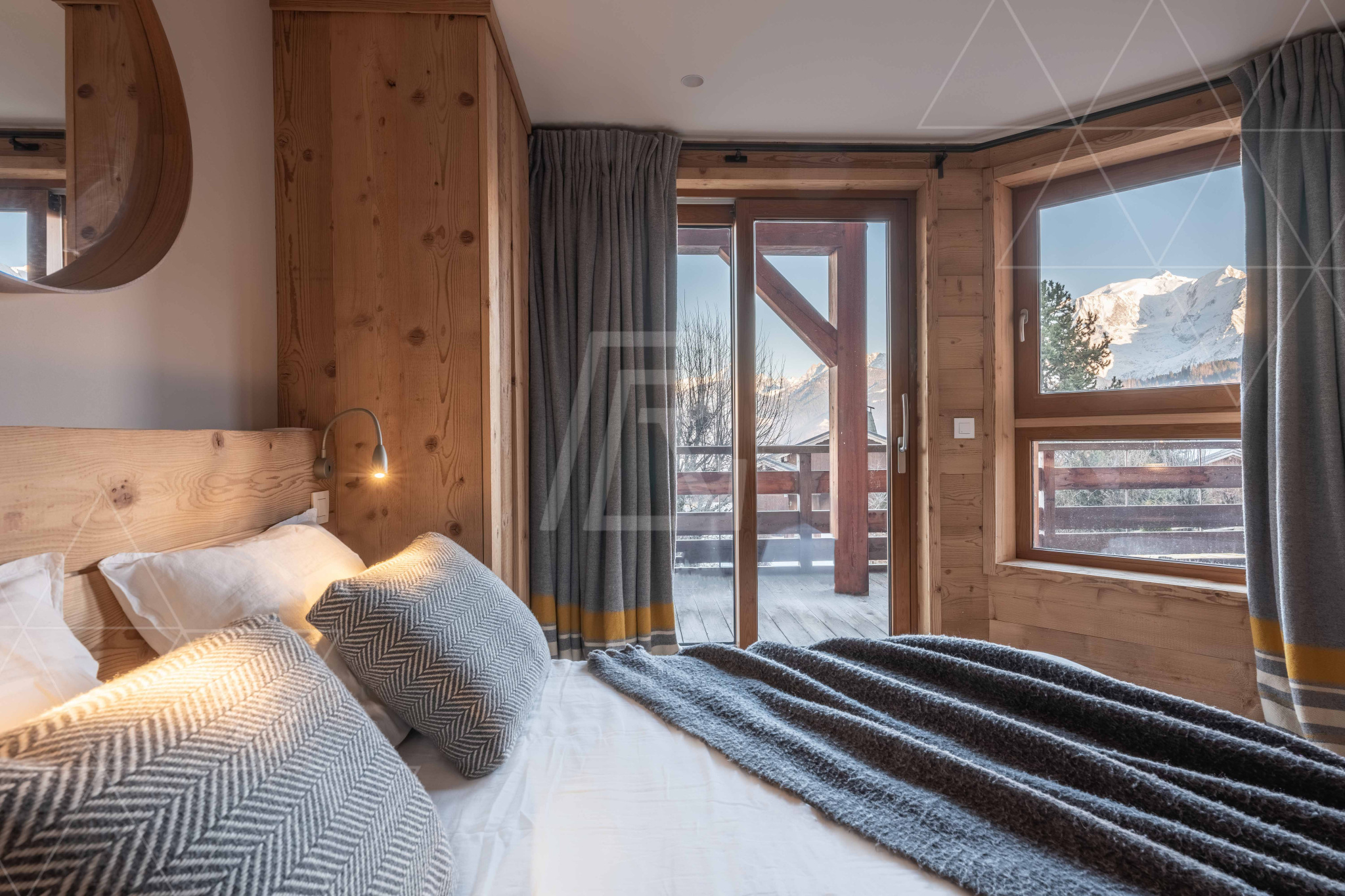 À louer, demi-chalet de 190 m² sur quatres niveaux, offrant une vue à 180° sur le massif du Mont Blanc.