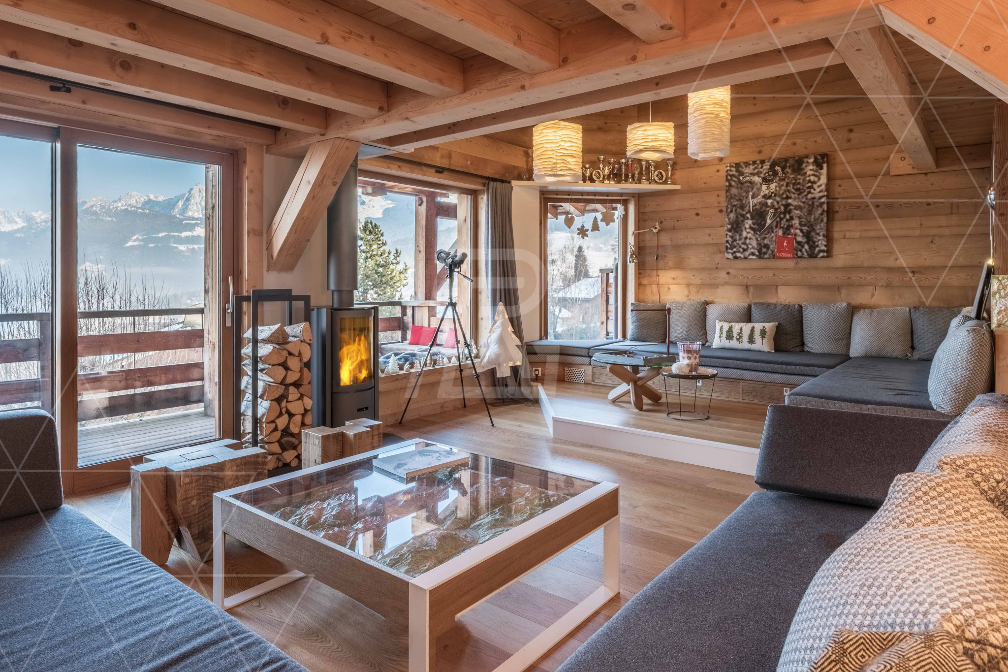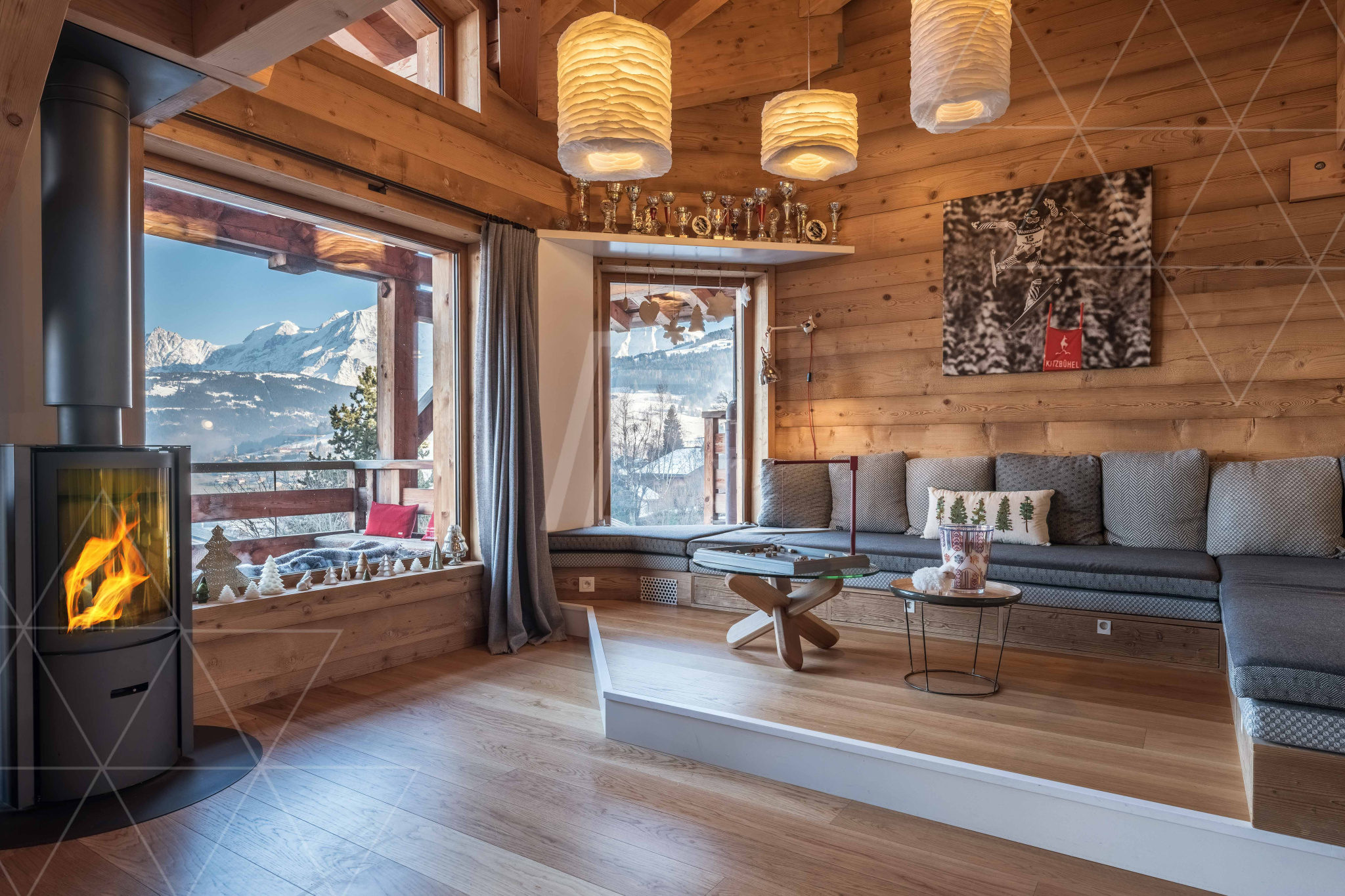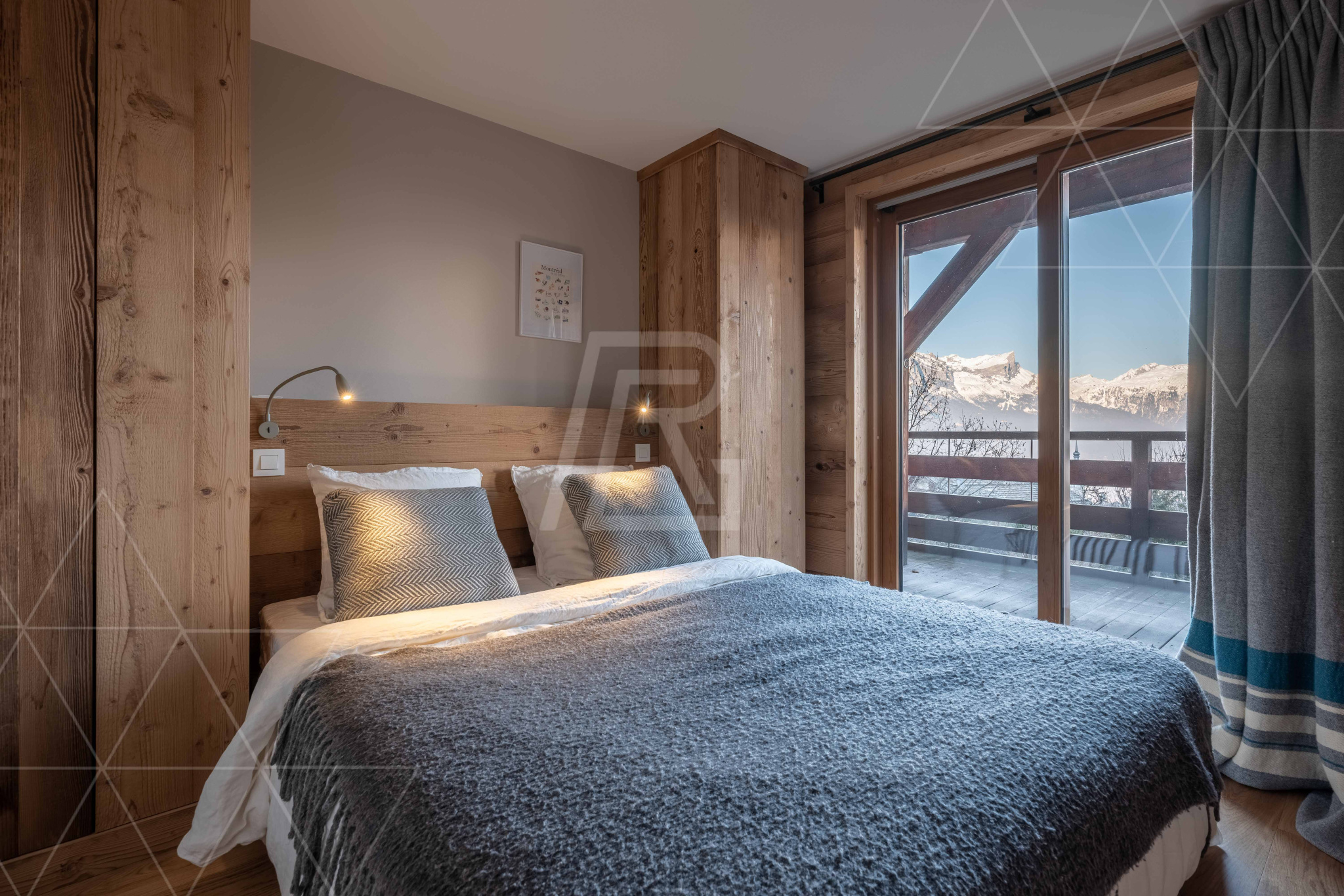 À louer, demi-chalet de 190 m² sur quatres niveaux, offrant une vue à 180° sur le massif du Mont Blanc.