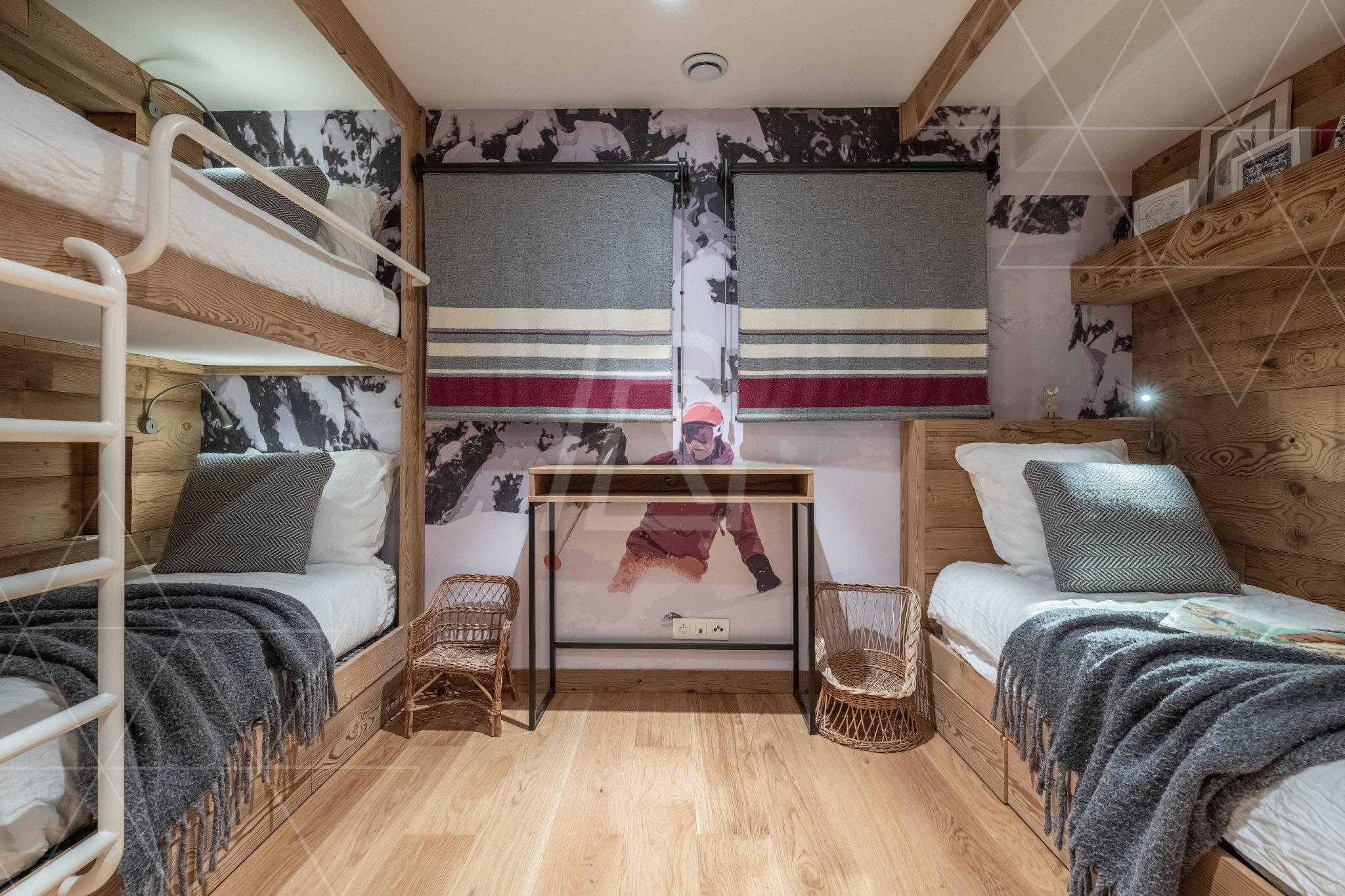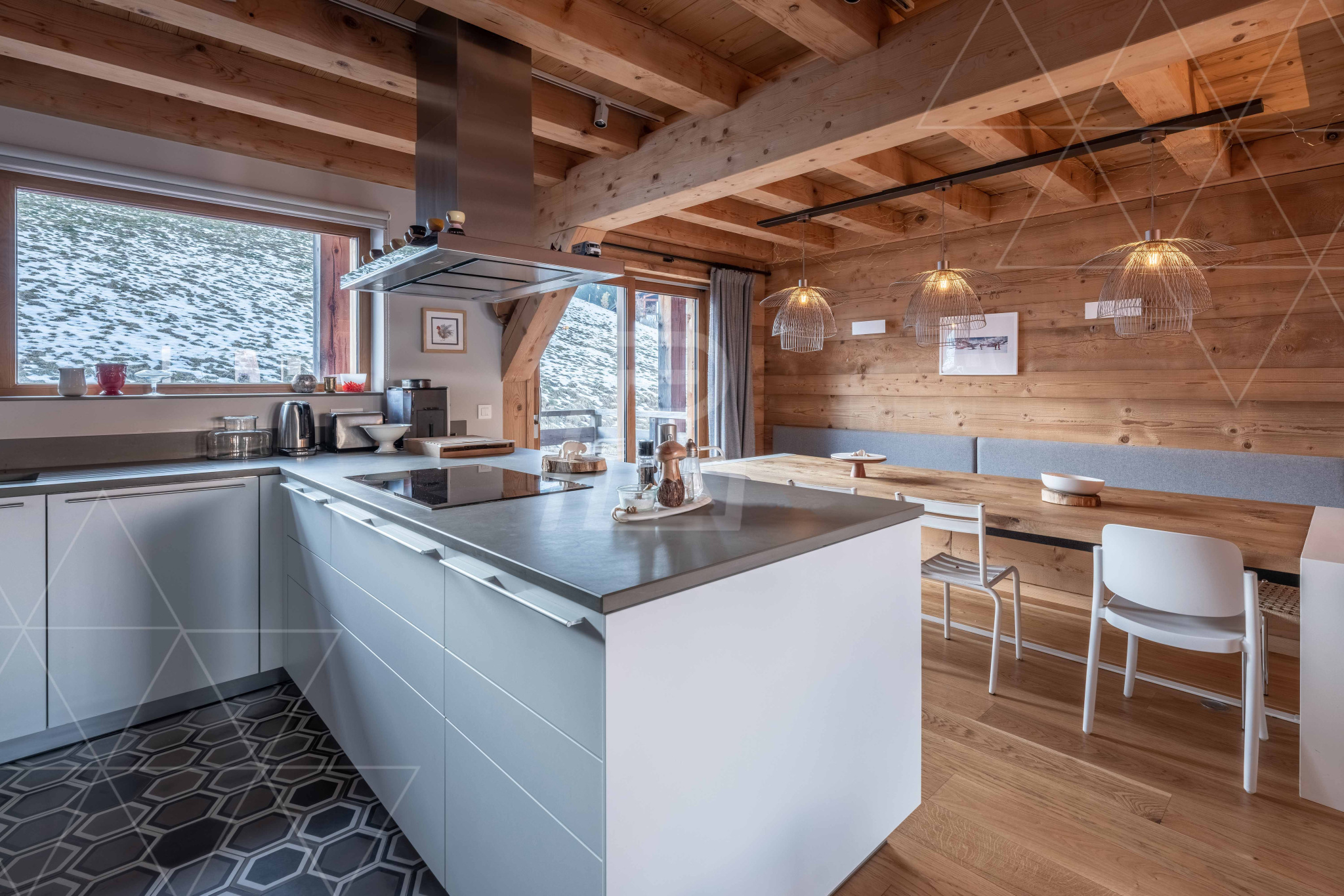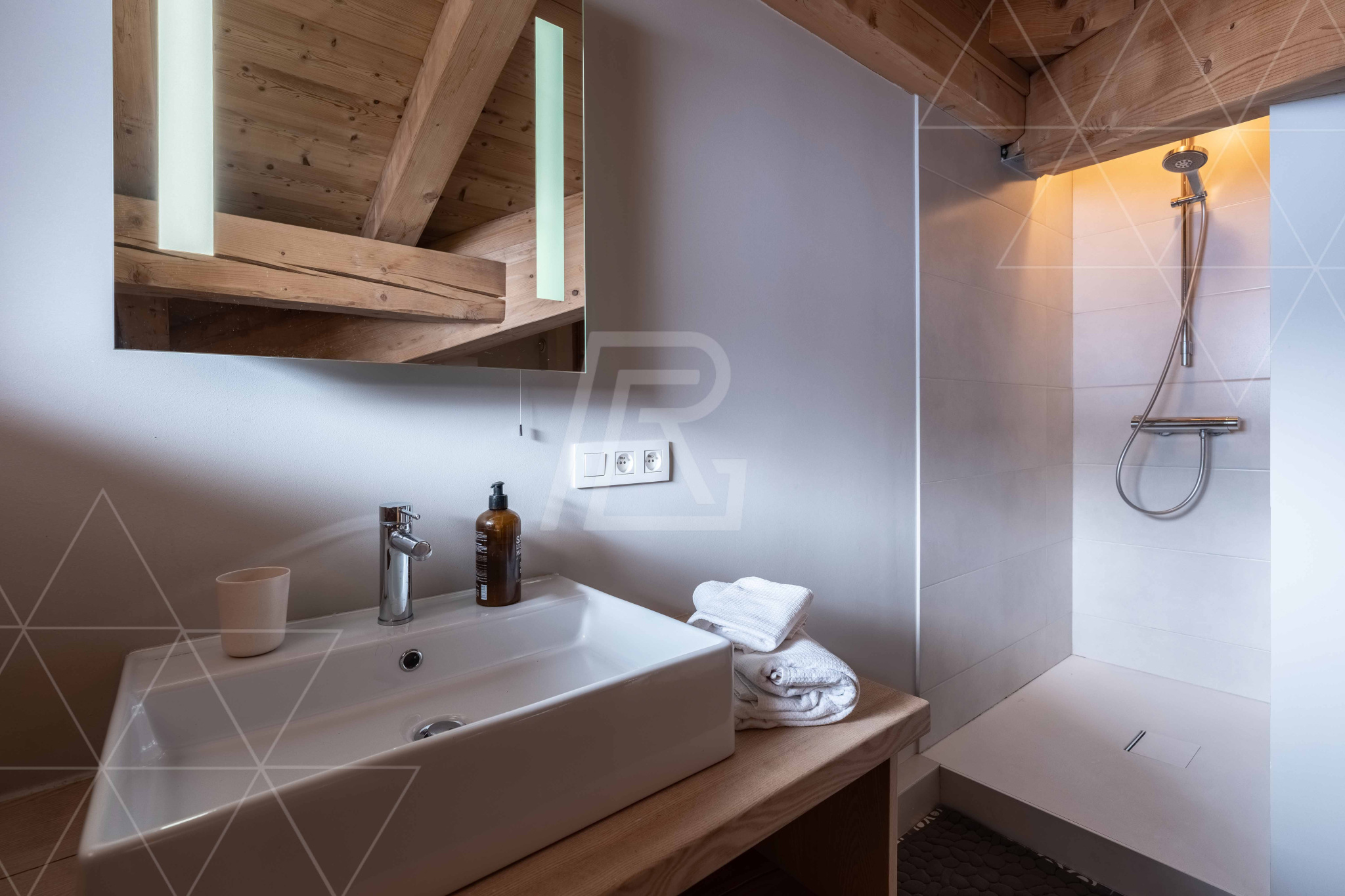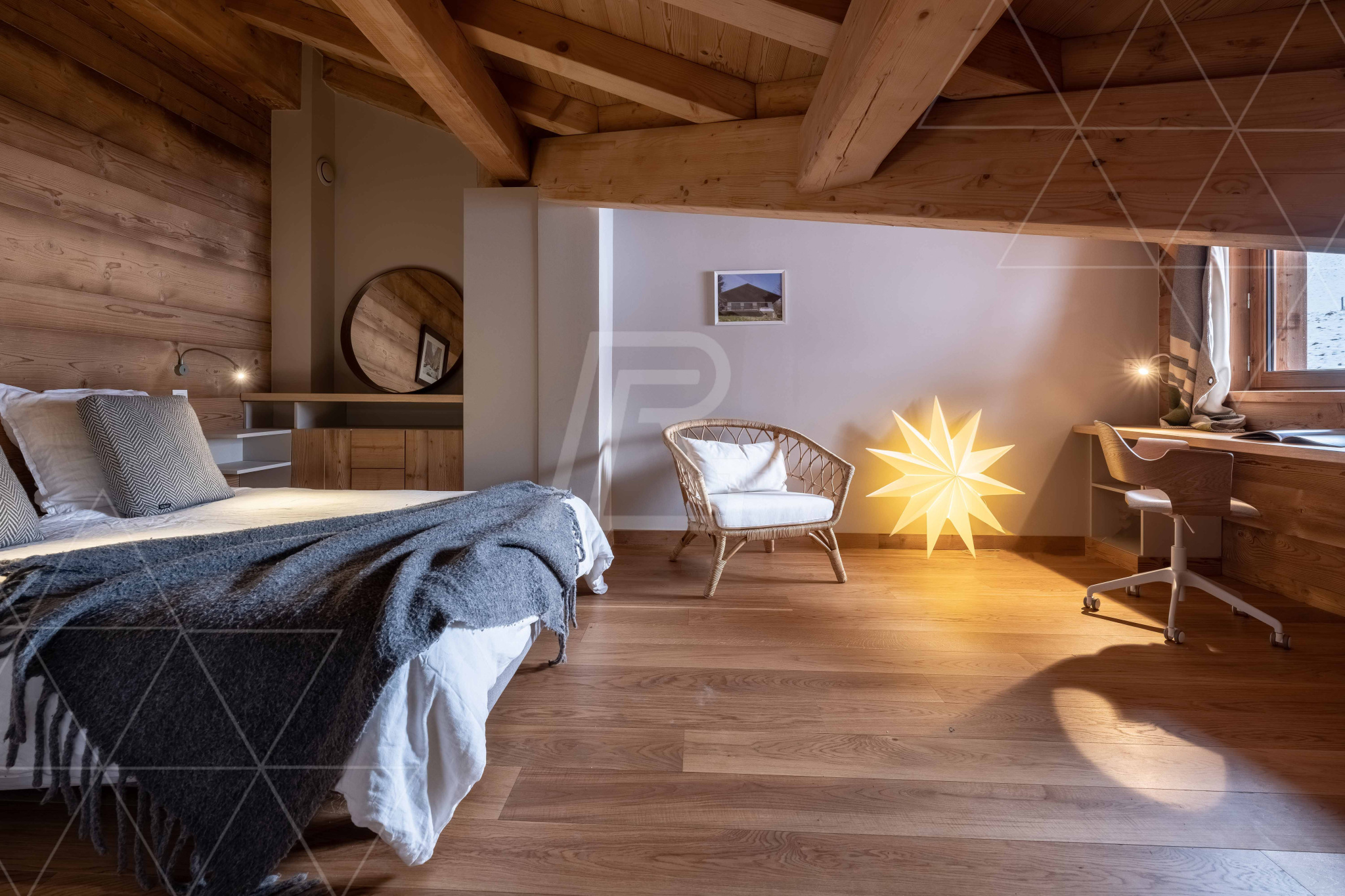 À louer, demi-chalet de 190 m² sur quatres niveaux, offrant une vue à 180° sur le massif du Mont Blanc.