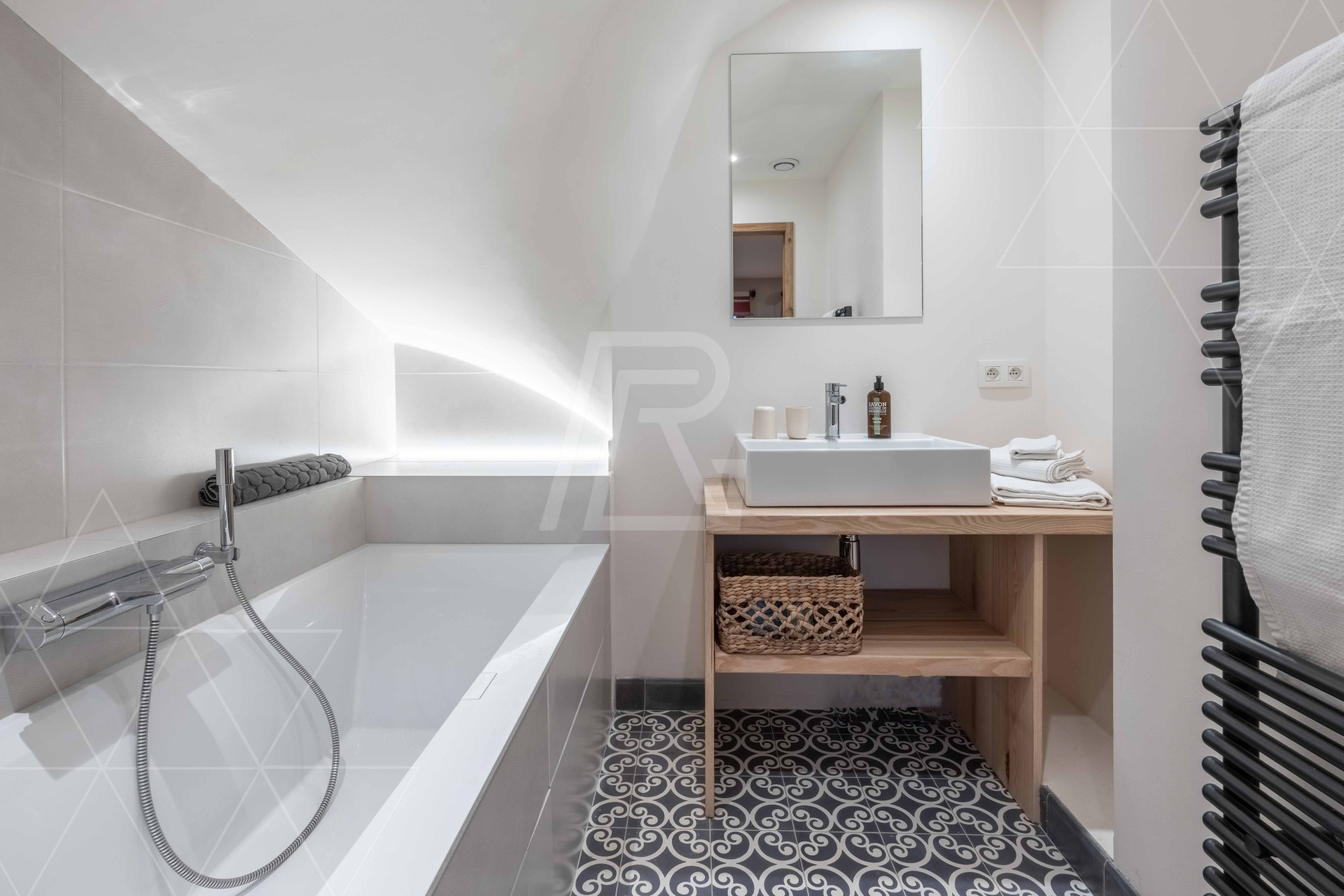 - 1er étage : 3 chambres doubles (dont 2 avec salle de bain privative), 1 salle d’eau indépendante avec lave-linge et sèche-linge, WC sur le palier.
