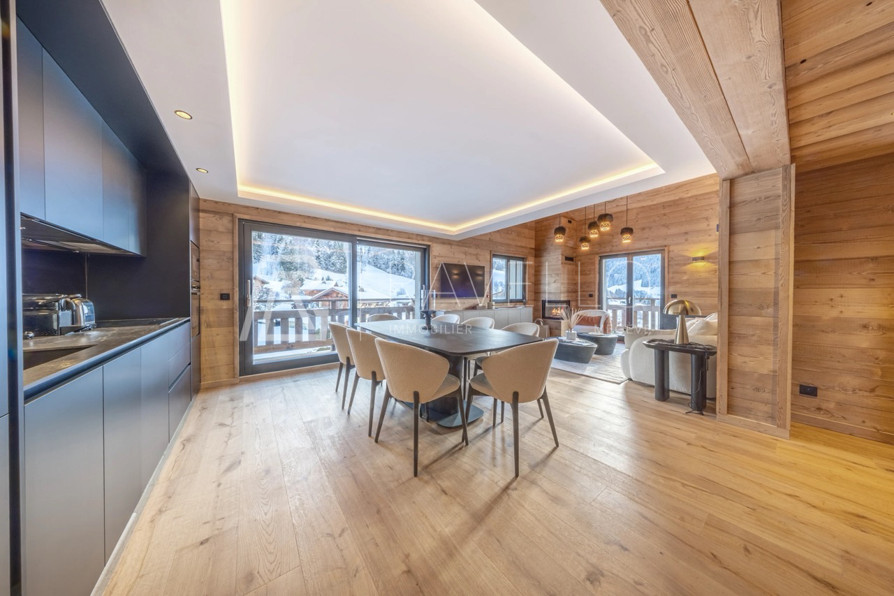 L’architecture respecte le style traditionnel mégevan, avec des matériaux nobles, des finitions soignées et des vues dégagées sur les massifs.
