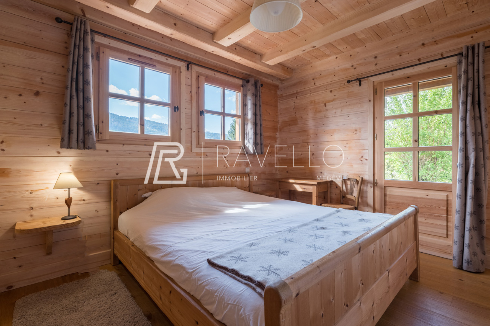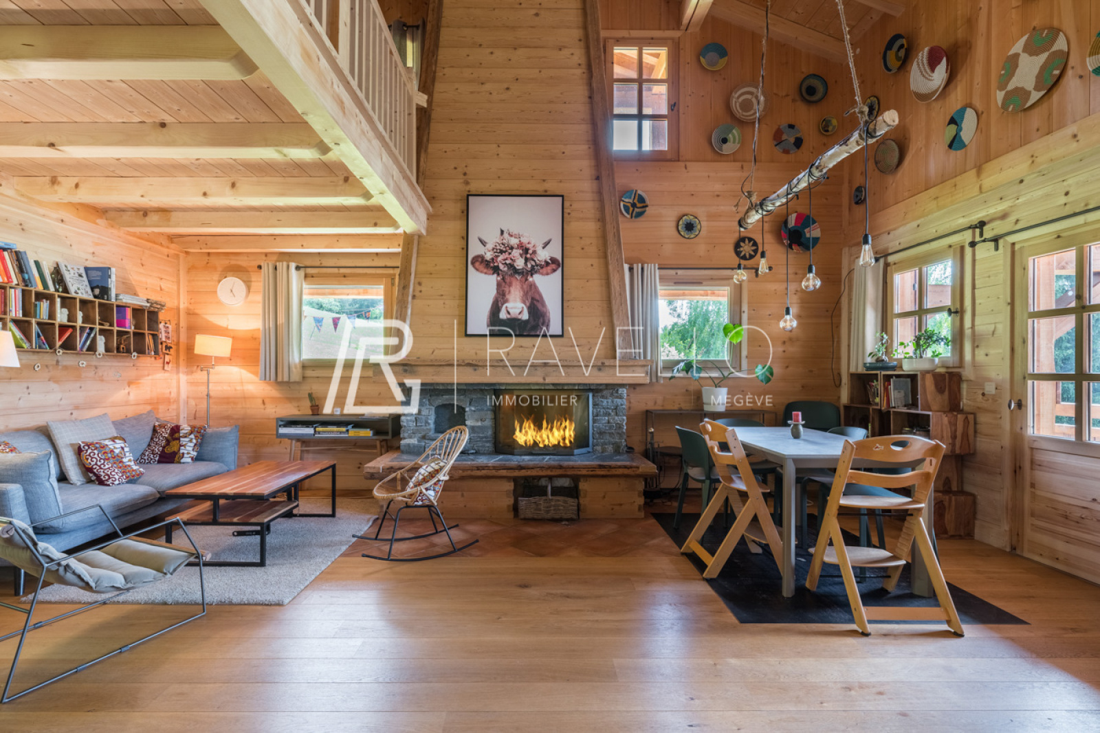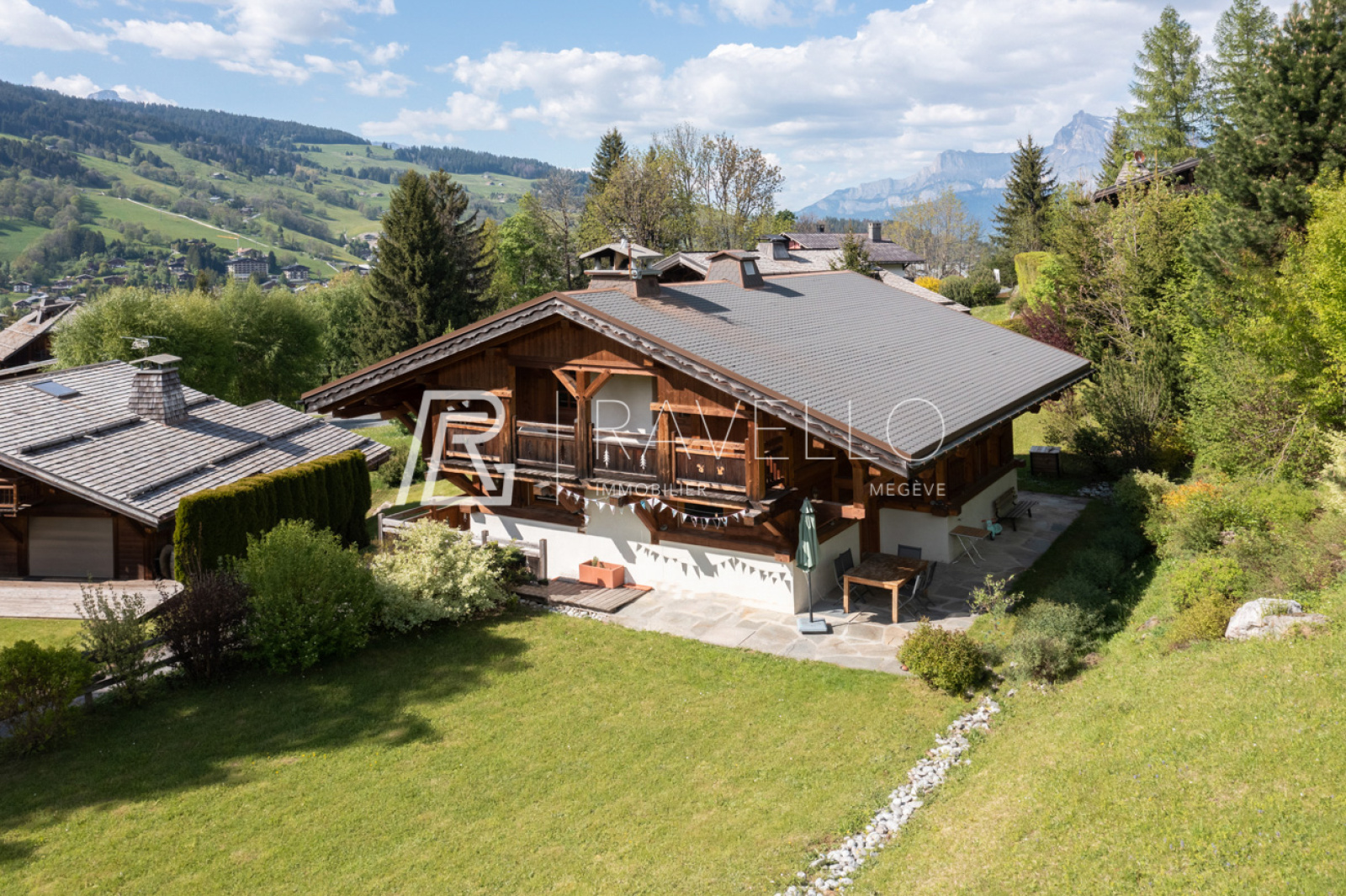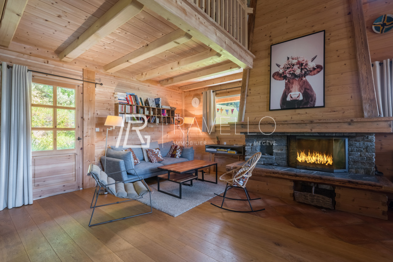 SOUS COMPROMIS - Situé dans un secteur prisé de Megève, à la fois connecté au centre du village et peu densifié, ce chalet familial d'une superficie de 239 m2 de surface totale (137 m2 habitable) offre un cadre de vie paisible avec une vue dégagée sur les montagnes.