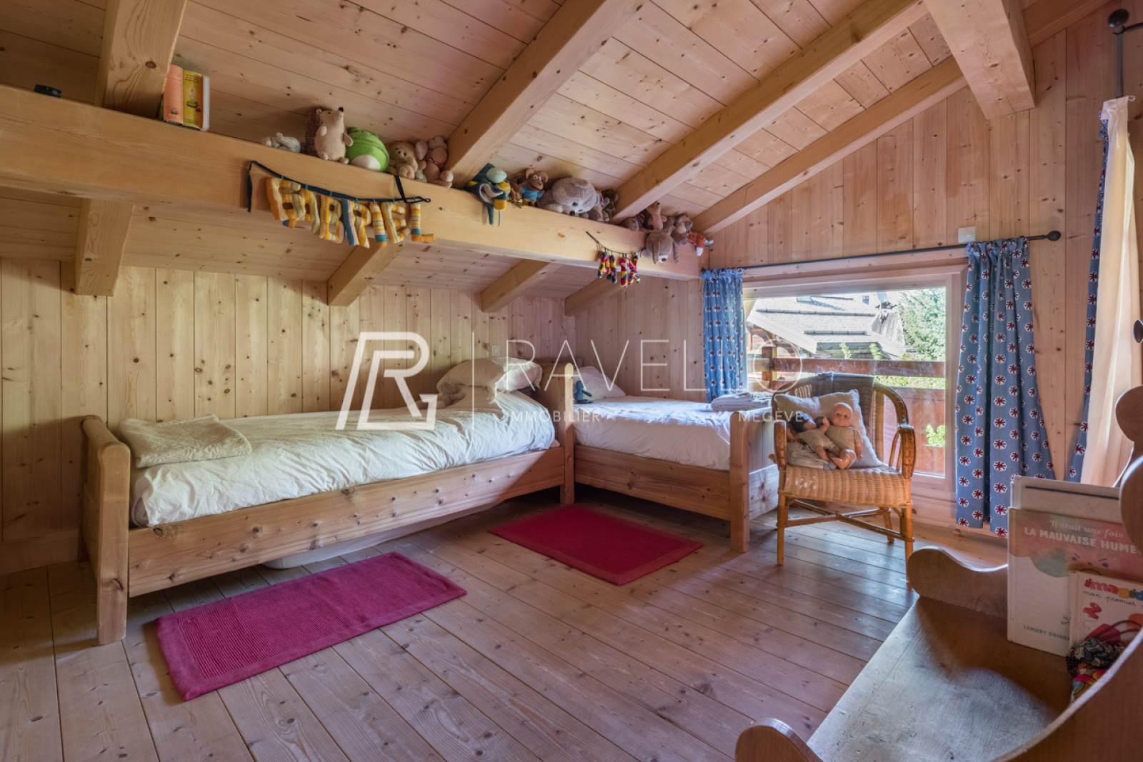 Le chalet est édifié sur un terrain d’environ 1 300 m² en zone constructible du PLU et se compose ainsi :