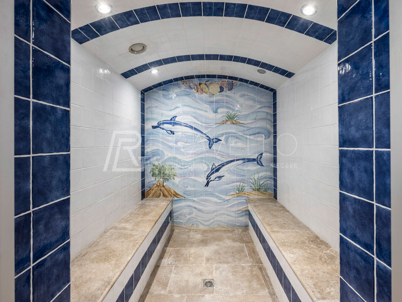 À cela s’ajoute un espace bien-être d’exception, comprenant une piscine intérieure ouverte sur la terrasse et le jardin ainsi qu’un hammam, offrant un luxe certain : celui de se ressourcer en toute intimité, été comme hiver.